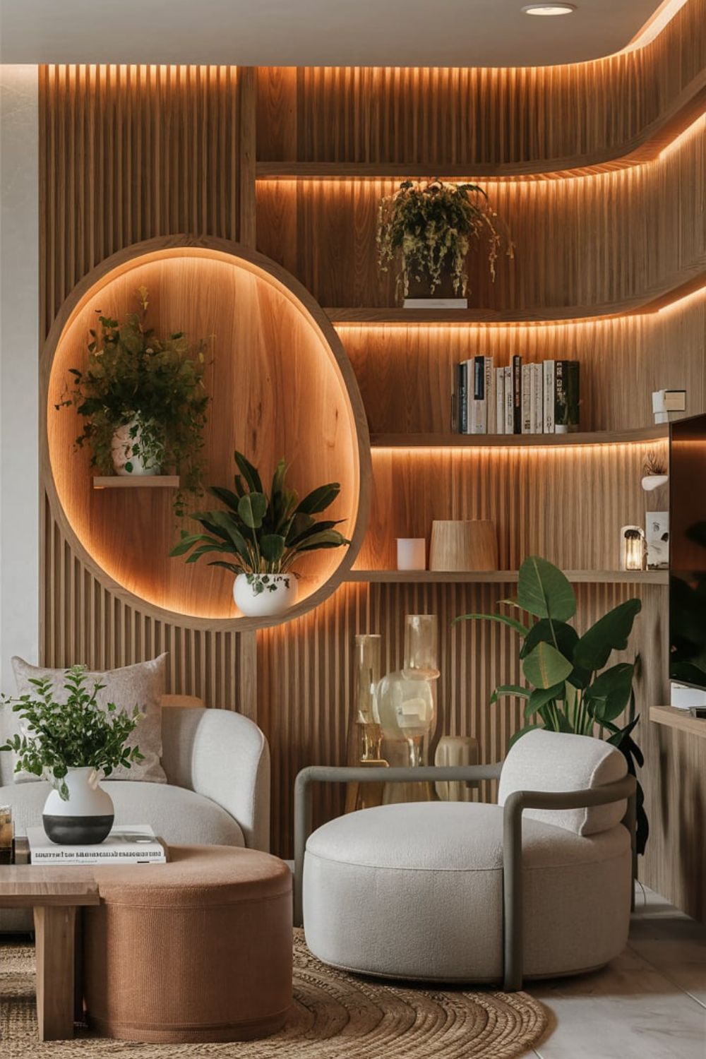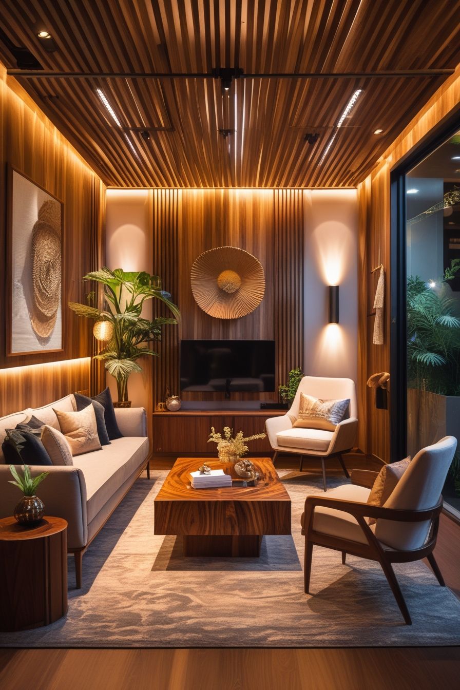 • Phòng khách ưu tiên sự linh hoạt, kết hợp đèn nền – đèn trang trí.