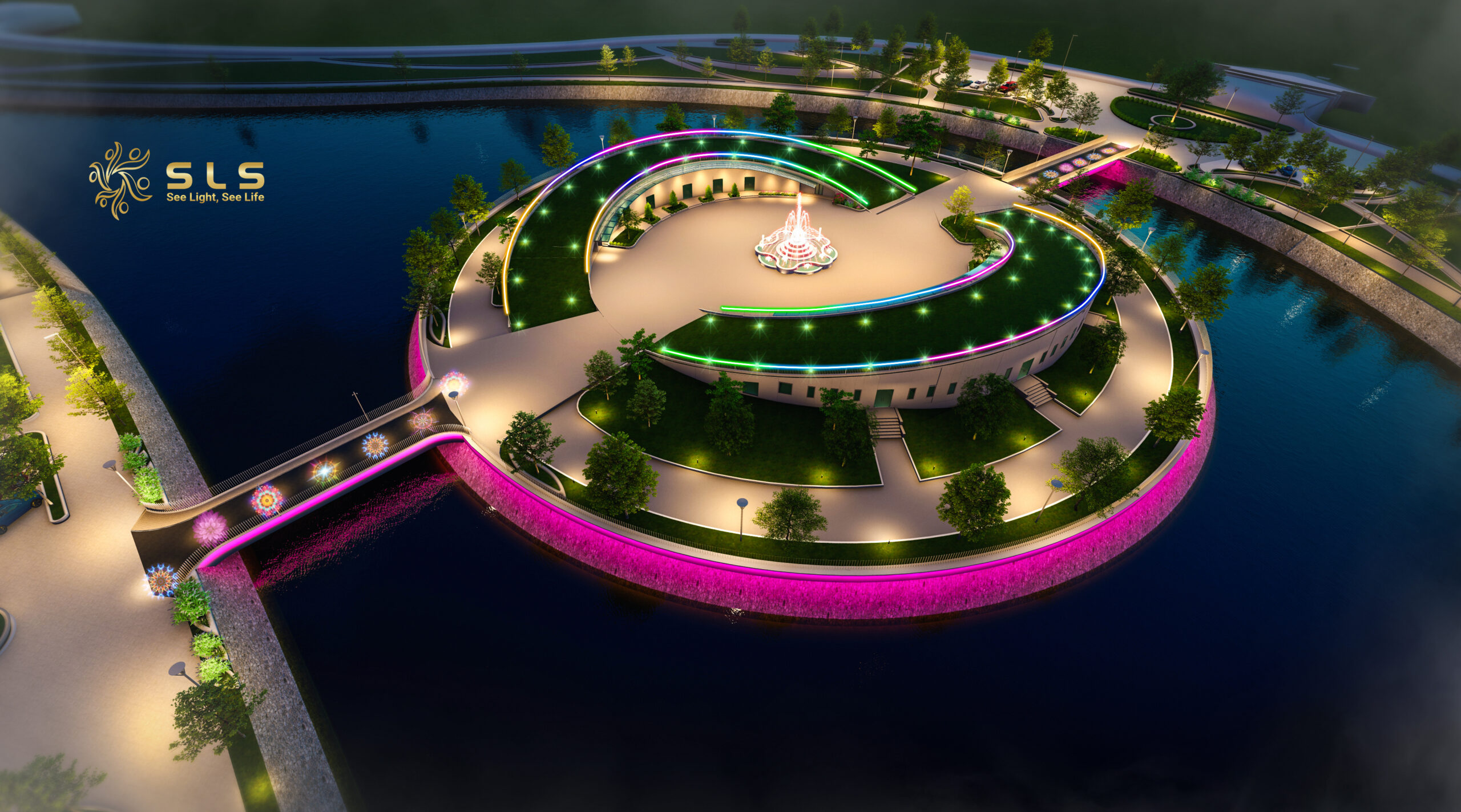 Trong dự án chiếu sáng cảnh quan đảo nổi lần này, SLS đã biến một khu vực yên ả giữa lòng hồ trở thành tâm điểm thị giác, nơi ánh sáng không chỉ đảm bảo công năng mà còn kể một câu chuyện đầy cảm hứng.